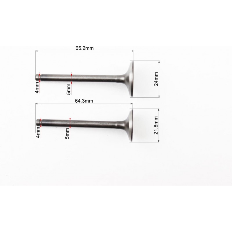 Клапана впускной (H-65,2/ D-24), выпускной (H-64,3/ D-21,8) к-кт 2шт, 125cc Китай