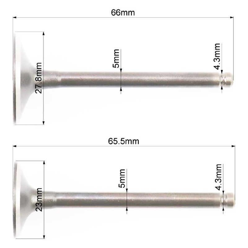 Клапана впускной (H-66/ D-27,8), выпускной (H-65,5/ D-23) к-кт 2шт, 150cc TMMP