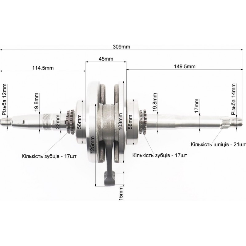 Коленвал GY6-150 "длинный вал" Viper-OMEGA (FCNCO, заводской) FENGRI