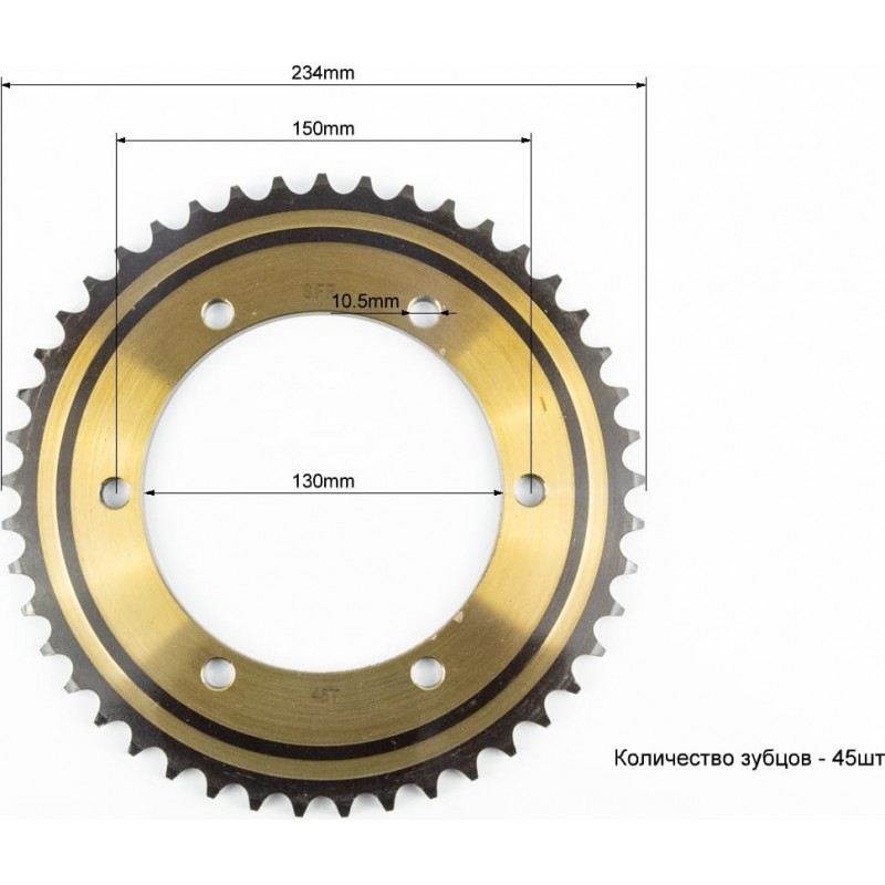 Звезда задняя 530-45T-d-130/ 6отв.*150мм "калёная", LIFAN (незначительный налёт) SFR