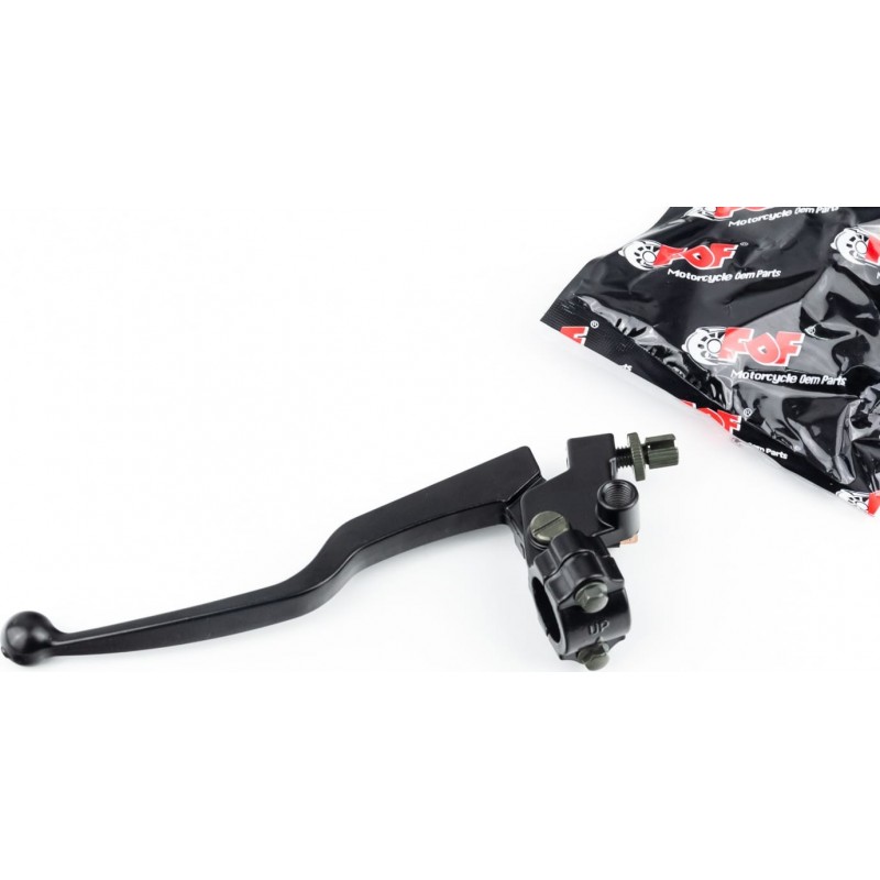 Рычаг руля левый (сцепления), крепление+жабка, под зеркало M10, МОТО, чёрный FDF