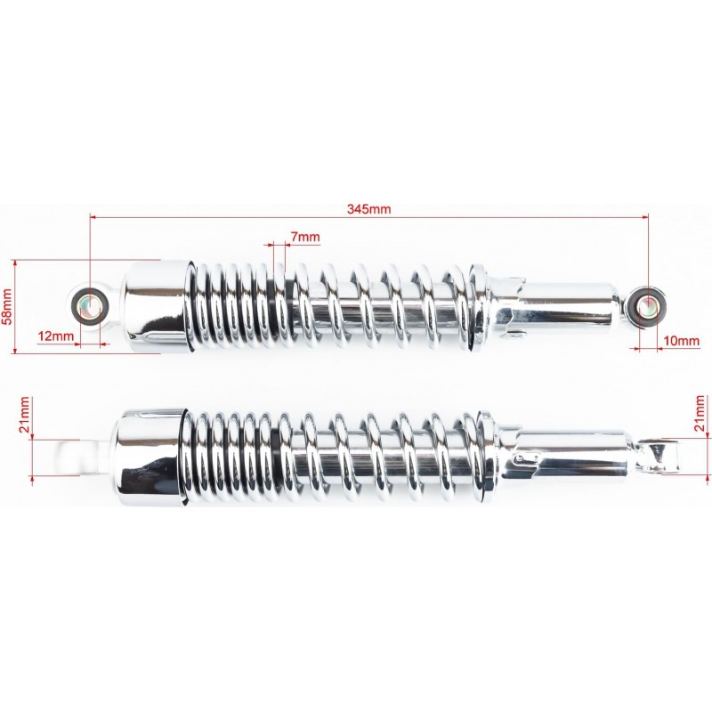 Амортизатор задний JH/CB/CG-345мм*d58мм (втулка 12мм / втулка 10мм) со стаканом регулир., хром к-кт 2шт R-GUANG