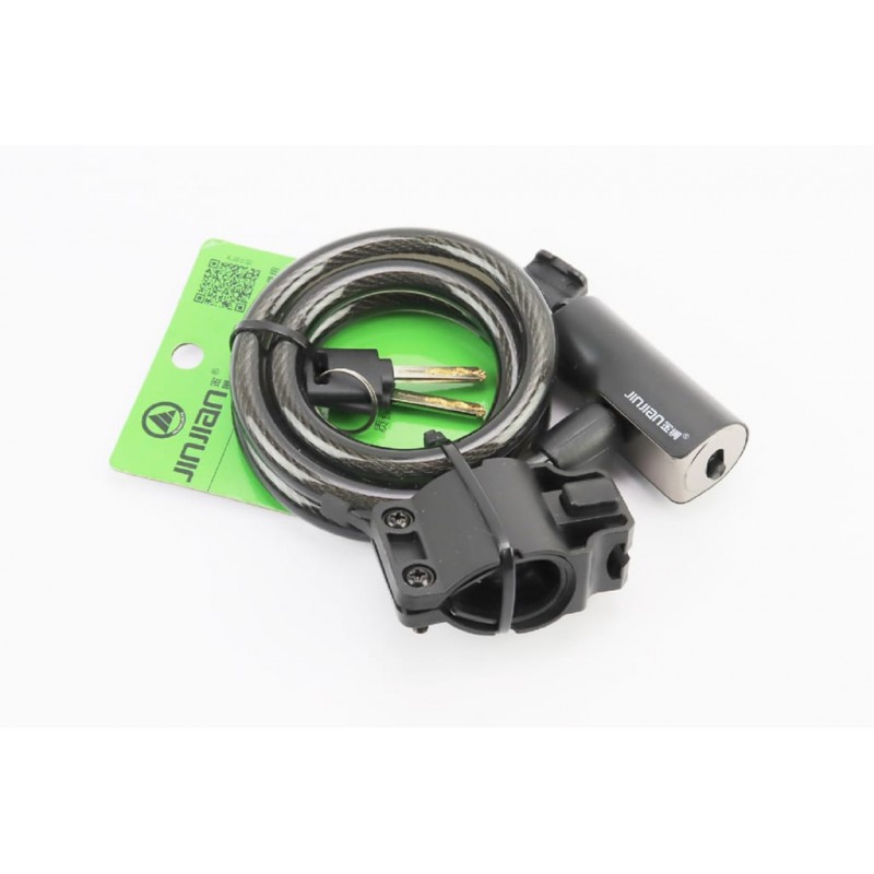 Замок противоугонный тросовый 1000х12мм под ключ, крепл. за трубу сидения, чёрный 511 JINJIAN