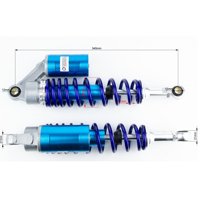 Амортизатор задній JH/CB/CG-340мм, d-62мм (втулка 12мм / втулка 12мм) газовий регул., синій к-кт 2шт TATA