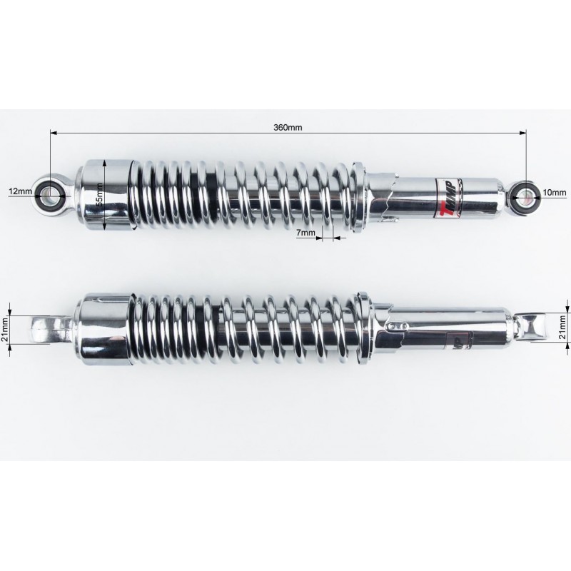 Амортизатор задній JH/CB/CG-360мм*d-55мм (втулка 12мм / втулка 10мм) стакан, регул., хром к-кт 2шт TMMP