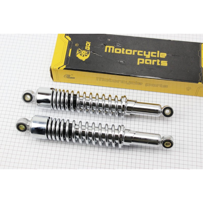 Амортизатор задній JH/CB/CG-335мм*d-55мм (втулка 12мм / втулка 10мм) стакан, регул., хром к-кт 2шт GO!