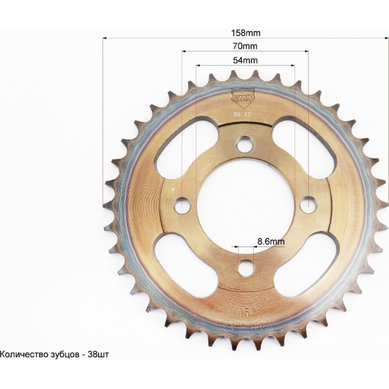 Зірка задня JH-428-38T-d-54/ 4отв.*70мм "гартована" JWBP