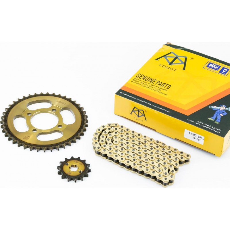 Зірки, ланцюг к-кт JH, 428H-104L+41T+14T "гартована, ланцюг DID GOLD" (у коробці) KDMOT