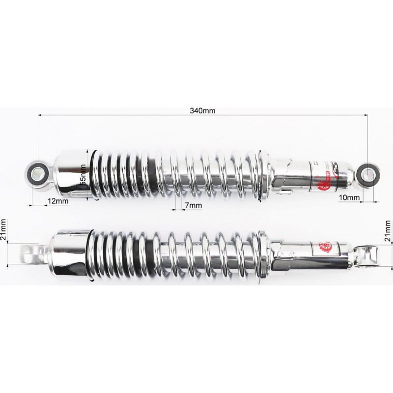 Амортизатор задній JH/CB/CG-340мм*d-55мм (втулка 12мм / втулка 10мм) стакан, регул., хром к-кт 2шт GO!