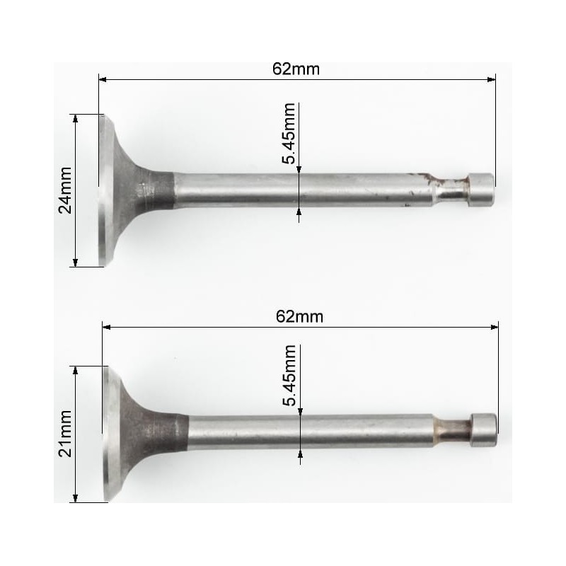 Клапани впускний (H-62/ D-24/ d-5,45), випускний (H-62/ D-21/ d-5,45) к-кт 2шт 156F/1P65F Китай
