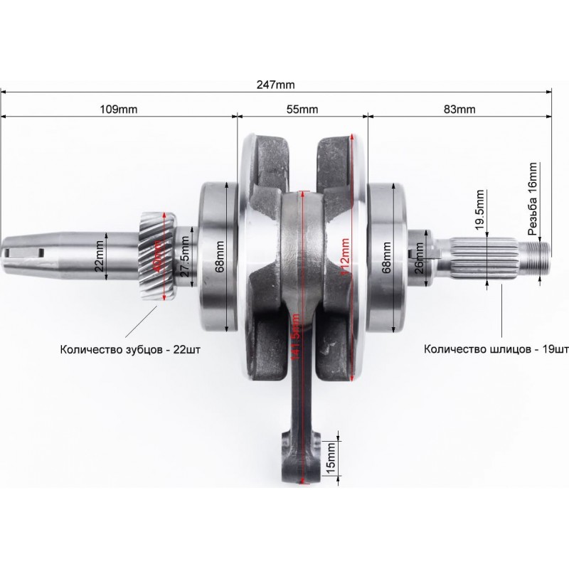 Коленвал+подшипники+шестерня CGB-200cc Viper