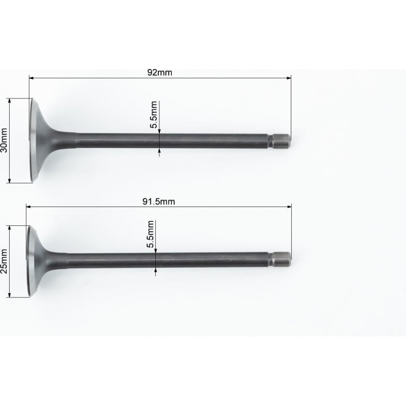 Клапана випускний (H-91,5/ D-25), впускний (H-92/ D-30) к-кт 2шт 150сc Formula