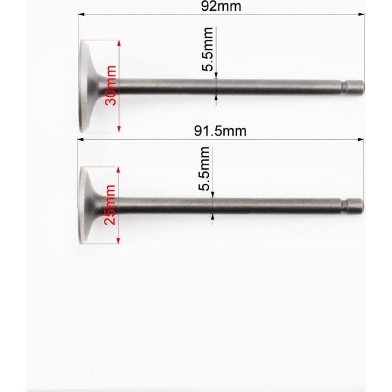 Клапана випускний (H-91,5/ D-25), впускний (H-92/ D-30) к-кт 2шт 150сc Китай