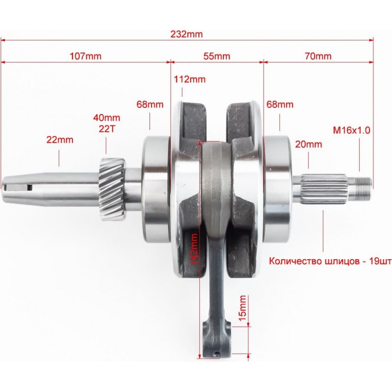 Колінвал+підшипники+шестерня CG-200cc Китай