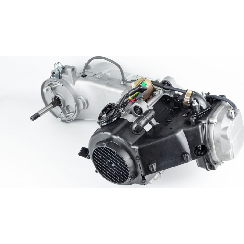 Двигун скутерний у зборі 150куб (довгий варіатор, довгий вал)+карбюратор, комутатор, котушка запалювання, фільтр повітряний тип