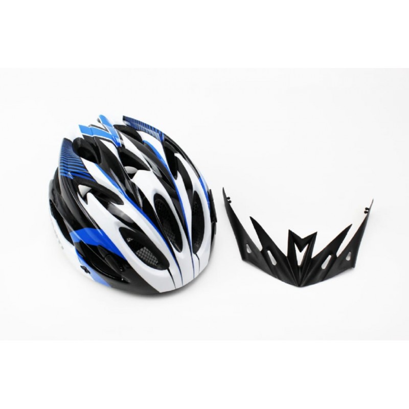Шолом велосипедний M (54-57 см) знімний козирок, 18 вент. отворів, чорно-біло-синій AV-01 AVANTI