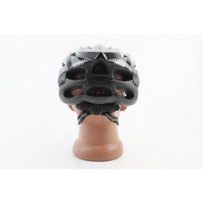Шолом велосипедний L (54-62 см) знімний козирок, 21 вент. отворів, чорно-зелено-білий Китай
