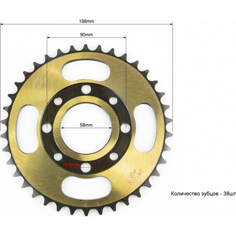 Зірка задня 520-38T-d-58/ 4отв.*90мм, "гартована" TEKEN/Loncin/CBF200-250/Scrambler 250 MARATHON