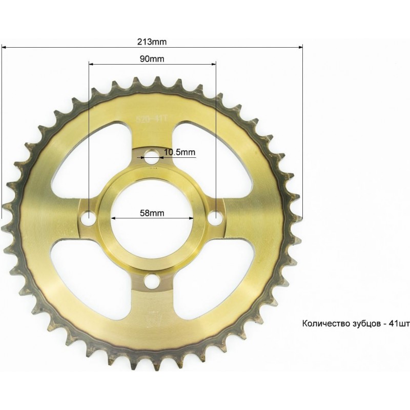 Зірка задня 520-41T-d-58/ 4отв.*90мм, "гартована" TEKEN/Loncin/CBF200-250/Scrambler 250 KDMOT