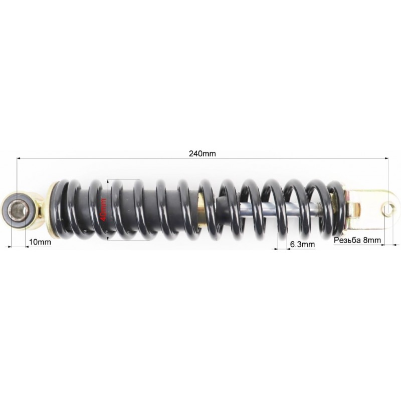 Амортизатор задній GY6/Honda-240мм*D-40мм (втулка 10мм / вилка 8мм), чорний Viper