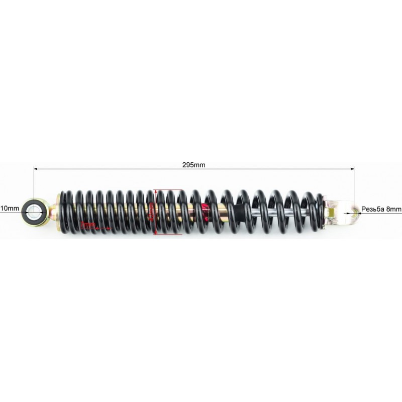Амортизатор задній GY6/Honda-295мм*D-42мм (втулка 10мм / вилка 8мм), чорний NAIDITE