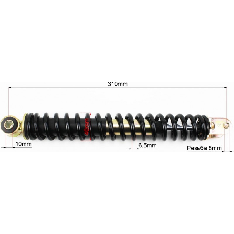 Амортизатор задній GY6/Honda-310мм*D-40мм (втулка 10мм / вилка 8мм), чорний HAORUN