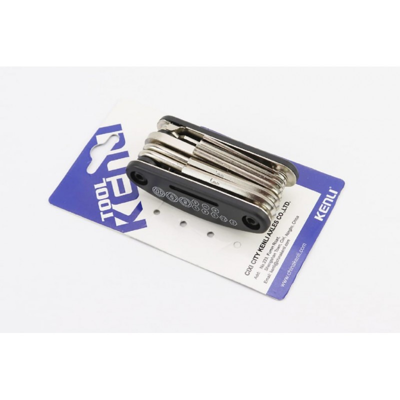 Ключ-набір 15 предметів (шестигранники 2,2.5,3,4,5,6 мм, спицевий ключ, викрутки пряма та фігурна, головки 8,9,10 мм, гайкові ключі 8,10,15 мм), KL-9802 KENLI в магазині Veloson