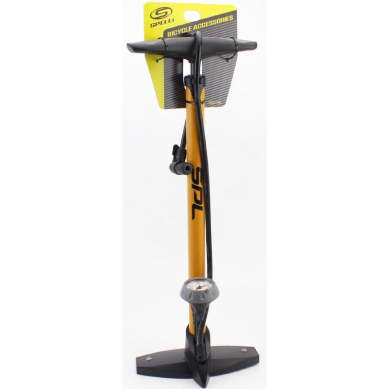 Насос ручний "підлоговий" з манометром 160 psi/11 bar, під штуцера Schrader&Presta, жовтий SPM-155P SPELLI