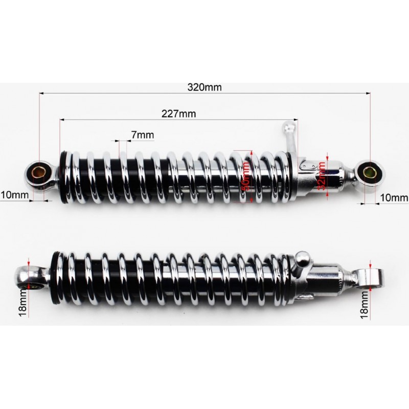 Амортизатор задній 320мм, D-50мм (втулка 10мм / втулка 10мм) з важелем регулир., хром к-кт 2шт NAIDITE