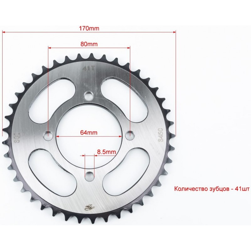 Зірка задня RS125-428-41T-d-64/ 4отв.*80мм "гартована" Loncin- JL200-10/Yamaha YBR125 Scorpion