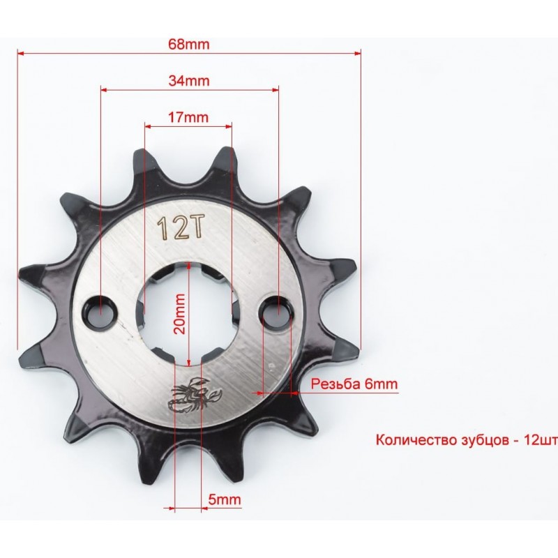 Зірка передня CG/CB-520H-12T (шліц 5мм) "гартована" Loncin LX250GY-3/Scrambler 250 Scorpion