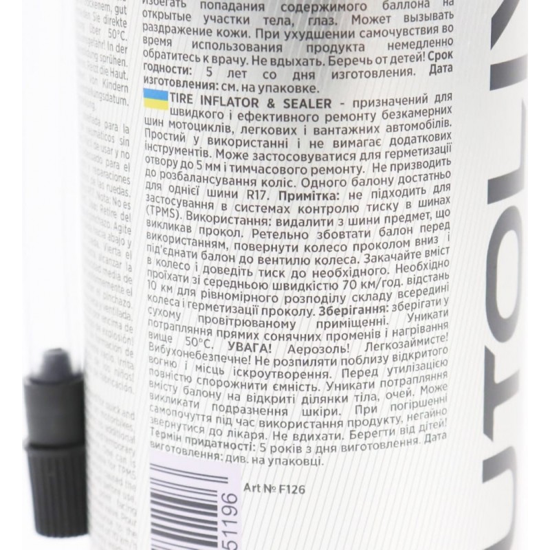Герметик для быстрого ремонта шин "TIRE INFLATOR SEALER", аэрозоль 450ml AUTOLIVE