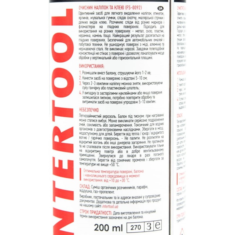 Очиститель от наклеек, аэрозоль 200ml (FS-0092) INTERTOOL