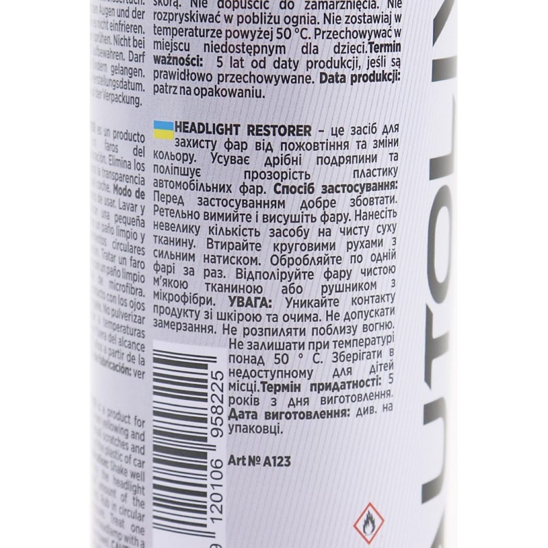 Средство для защиты фар от пожелтения и изменения цвета "HEADLIGHT RESTORER", 200ml AUTOLIVE