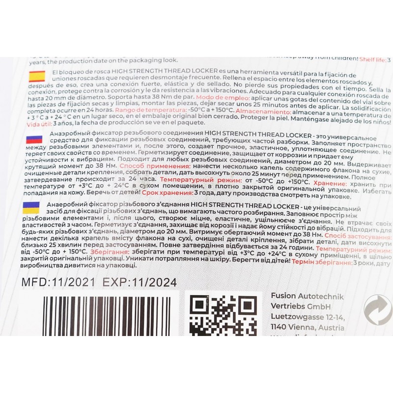 Фиксатор резьбы долгосрочный "THREAD LOCKER HIGH STRENGTH", 10ml AUTOLIVE