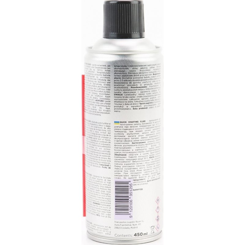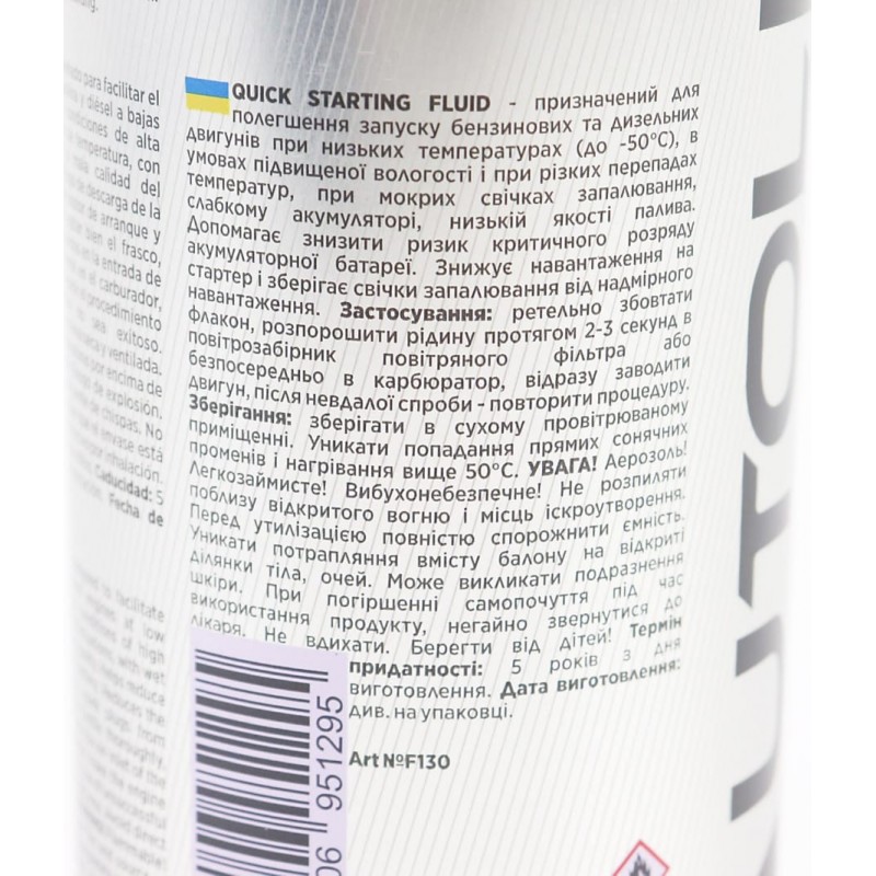 Ефір для легкого та швидкого запуску бензинових та дизельних двигунів "QUICK STARTING FLUID", аерозоль 450ml AUTOLIVE