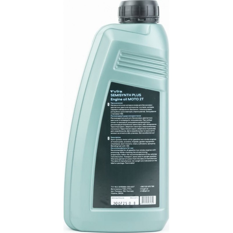 Масло 2T полусинтетическое для мототехники "MOTO 2T TC", 1L Vira
