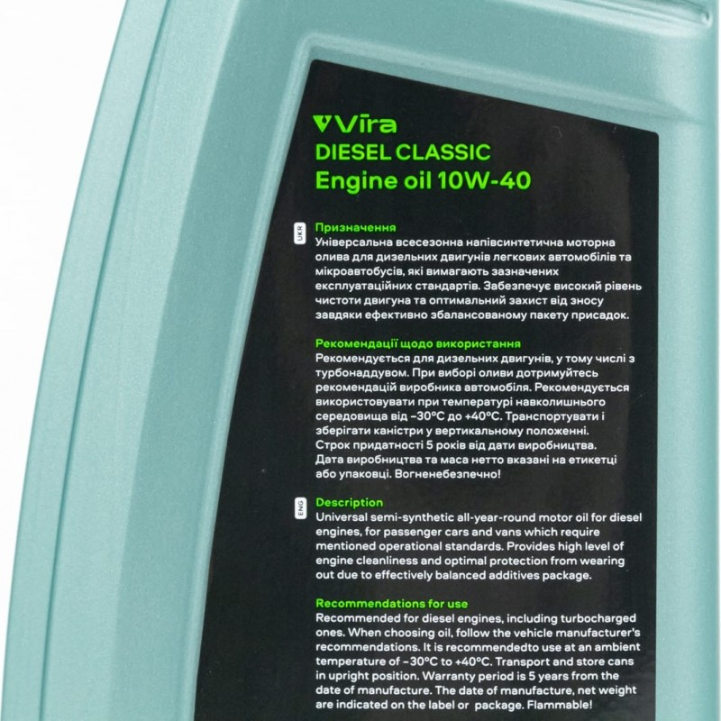 Масло 4T 10W-40 полусинтетическое дизельное "DIESEL CLASSIC A3/B3 CE/SG", 1L Vira