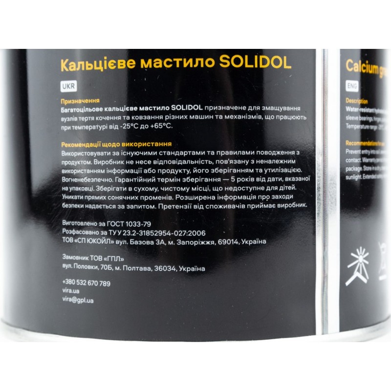Мастило багатоцільове кальцієве "СОЛІДОЛ жировий NGLI 2/3", 400g Vira