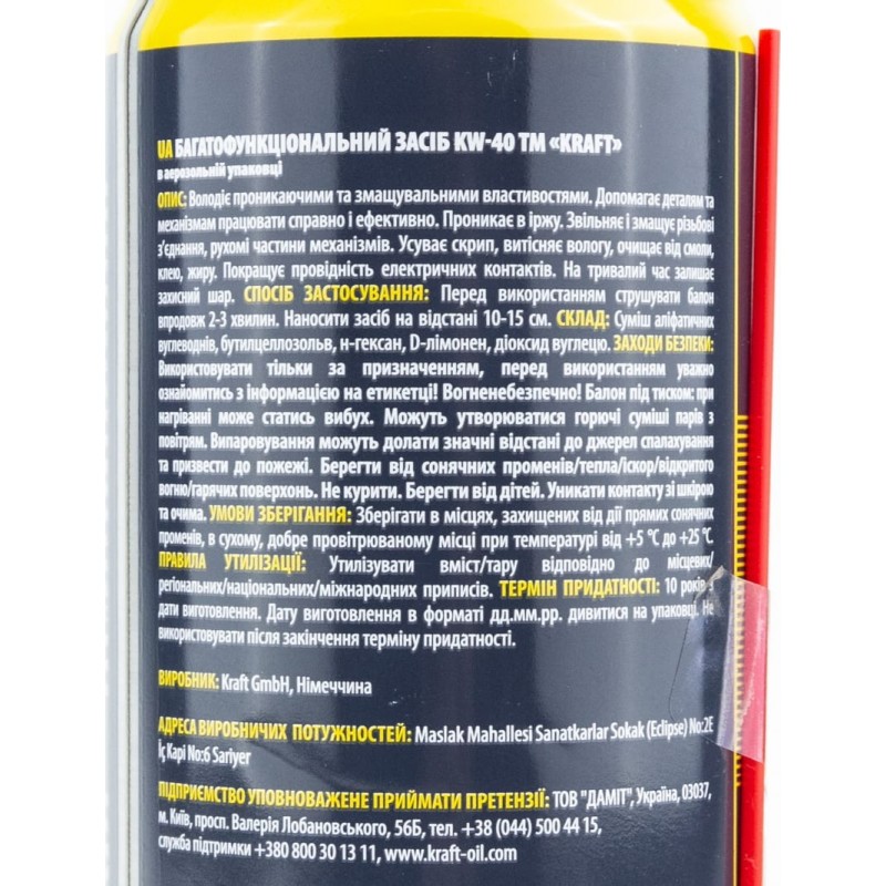 Смазка проникающая (аналог WD-40) "KW-40", аэрозоль 400ml KRAFT