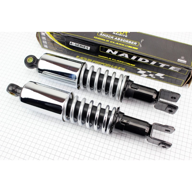 Амортизатор задній 360мм, D-64мм (втулка 12мм / вилка 10мм) з стаканом регулир., хром к-кт 2шт NAIDITE