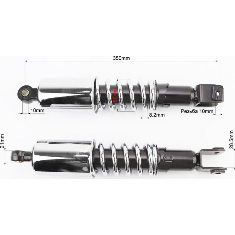 Амортизатор задній 350мм, D-60мм (втулка 10мм / вилка 10мм) з стаканом регулир., хром к-кт 2шт Китай
