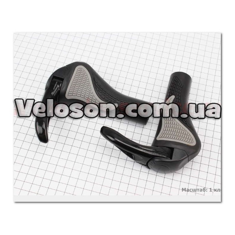 Купити Рукоятки руля 140мм із затискачем , ергономічні з ріжками к-кт, чорно-сірі RB-BT1008 Китай у магазині Veloson