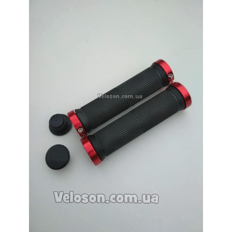 Грипси ручки з червоними Lock замками 130 мм із заглушками в кермо