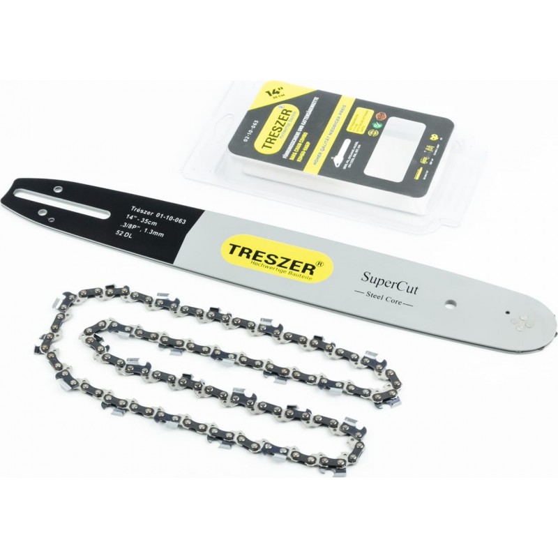 Шина 14"-1,3мм 3/8" 52зв L-42см + ланцюг 3/8"-1,3мм, 52зв. квад. зуб, на блістері TRESZER