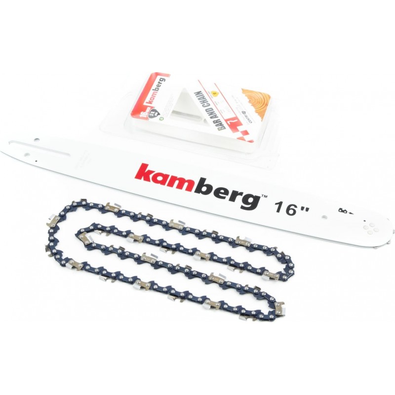 Шина 16"-1,3мм 3/8" 57зв L-45см + ланцюг 3/8"-1,3мм-57зв. квад. зуб, на блістері KAMBERG
