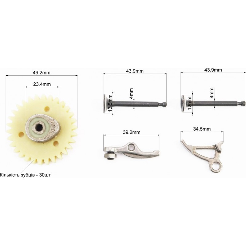 Клапани впускний (H-43,9/ D-13,5/ d-4), випускний (H-43,9/ D-12/ d-4), к-кт 139F-4Т шестерня розподільчого валу коромисла, к-кт