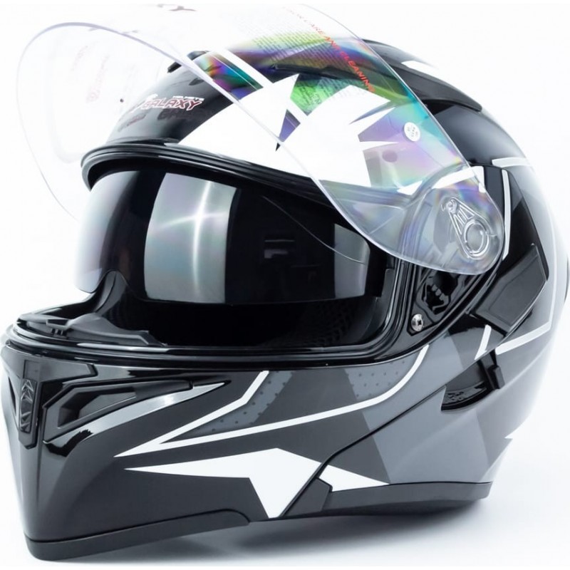 Шолом модуляр з відкидним підборіддям, висувні окуляри GLX-902 M (57-58см), чорно-білий GALAXY