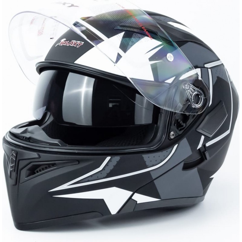 Шолом модуляр з відкидним підборіддям, висувні окуляри GLX-902 M (57-58см), чорно-білий мат GALAXY