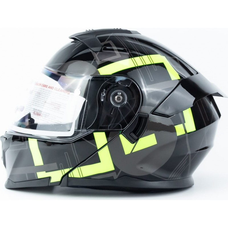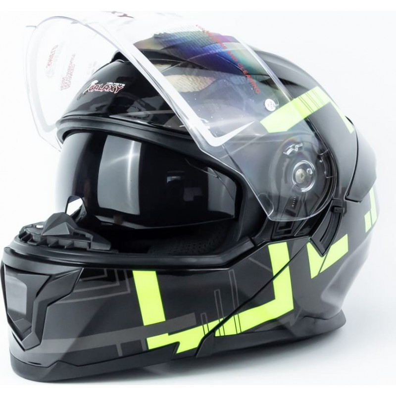 Шолом модуляр з відкидним підборіддям (стандарт DOT), висувні окуляри GLX-912 M (57-58см), чорно-салатовий GALAXY